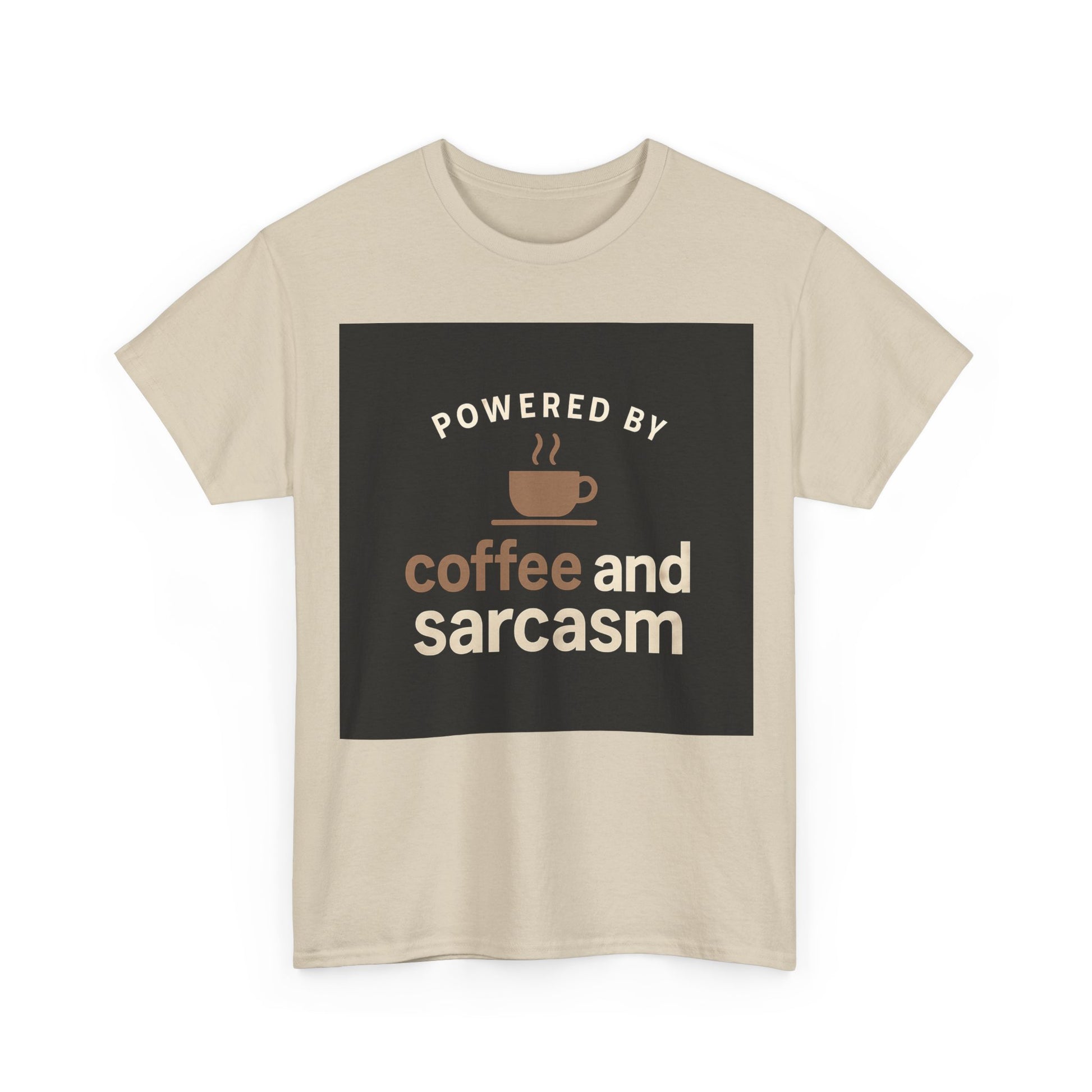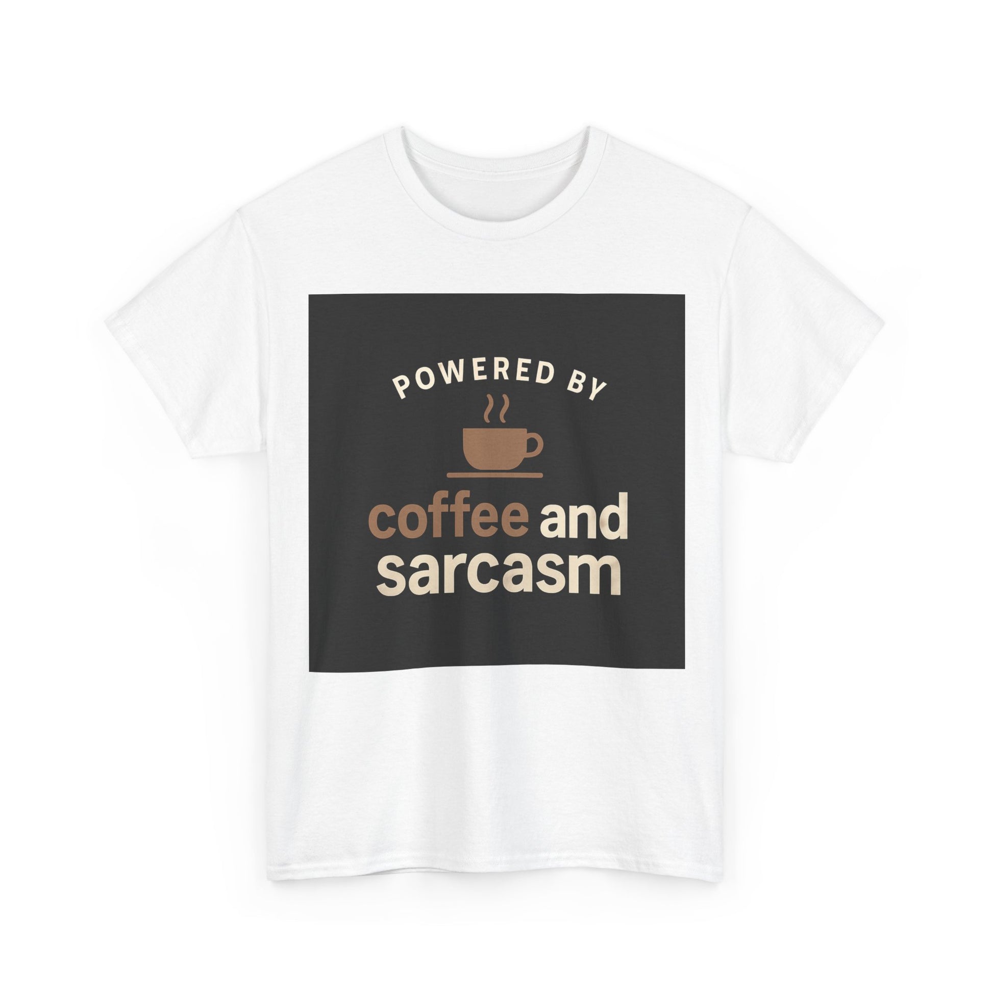 Coffee & Sarcasm T-Shirt — "Powered by Coffee and Sarcasm" Graphic Tee