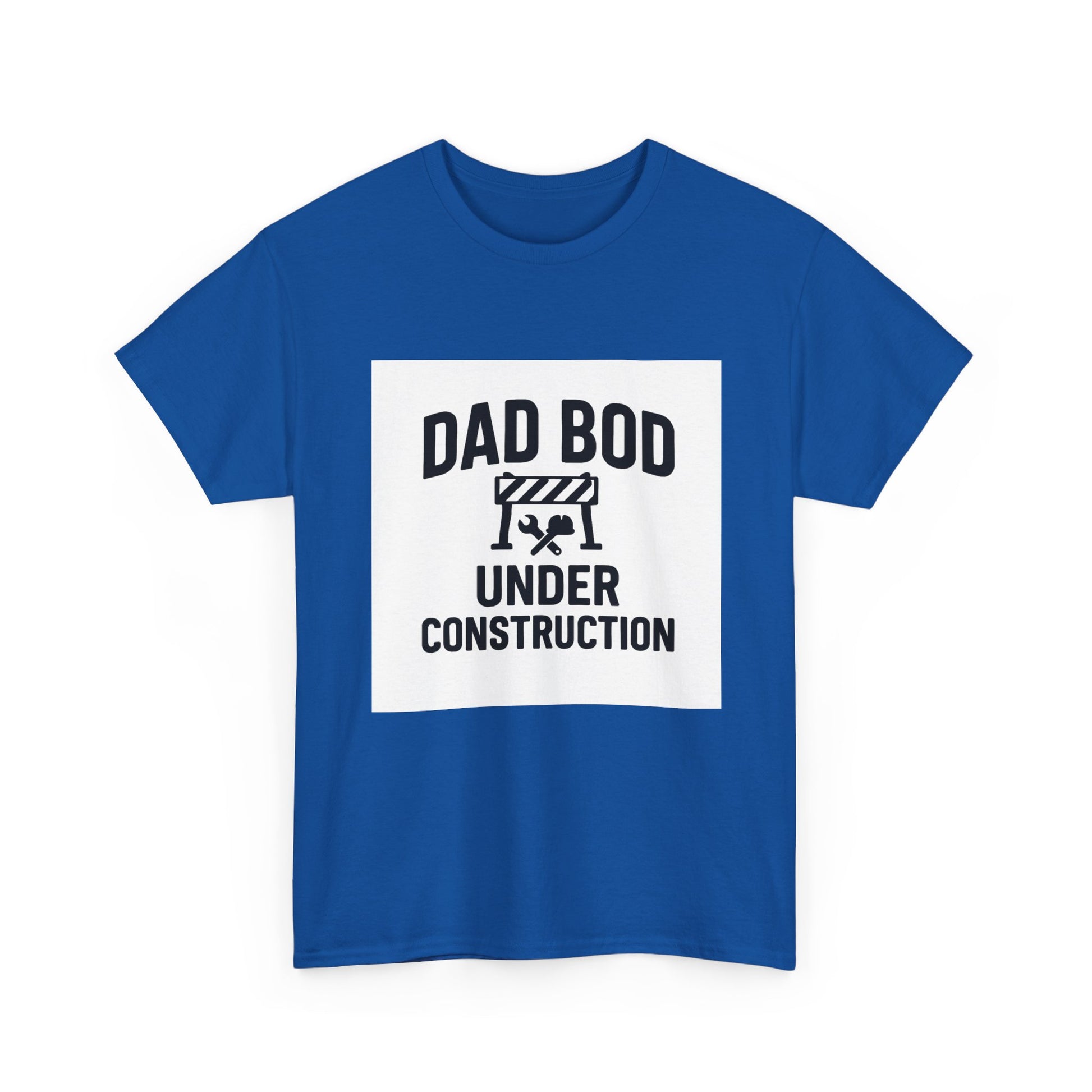 This relaxed cotton tee speaks with dry humor and confident comfort. The front print reads “DAD BOD” above a construction barricade illustration, with “UNDER CONSTRUCTION” below — a playful nod to the everyday, ongoing project of fatherhood. The shirt sits casually in the wardrobe: worn over pajamas at home, layered under a jacket for weekend errands, or tossed on for backyard barbecues. It’s straightforward, low-fuss, and built to move with you through busy mornings, messy dinners, and late-night storytime. The soft, stable fabric keeps prints crisp and the collar resilient, so the design stays front-and-center wash after wash.
