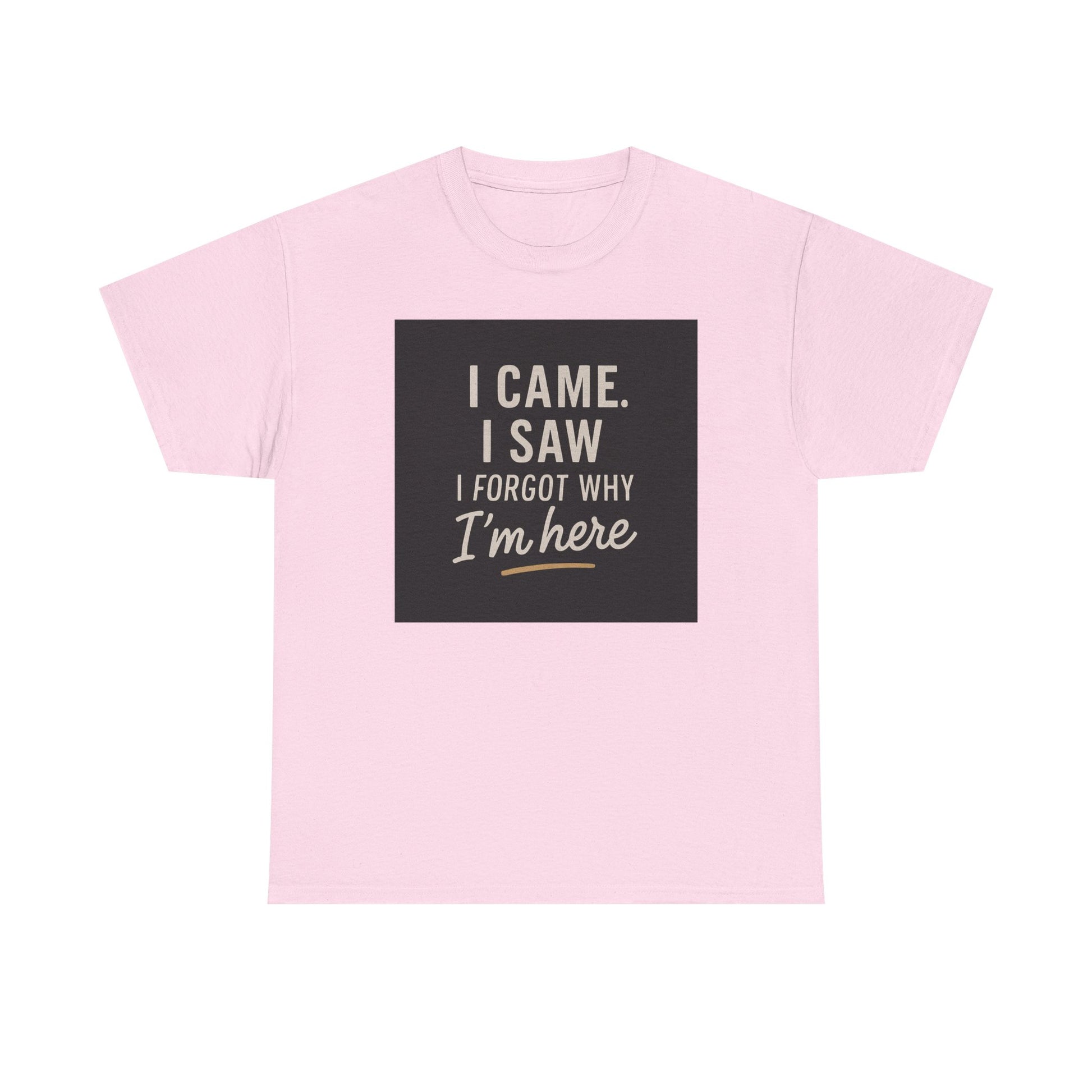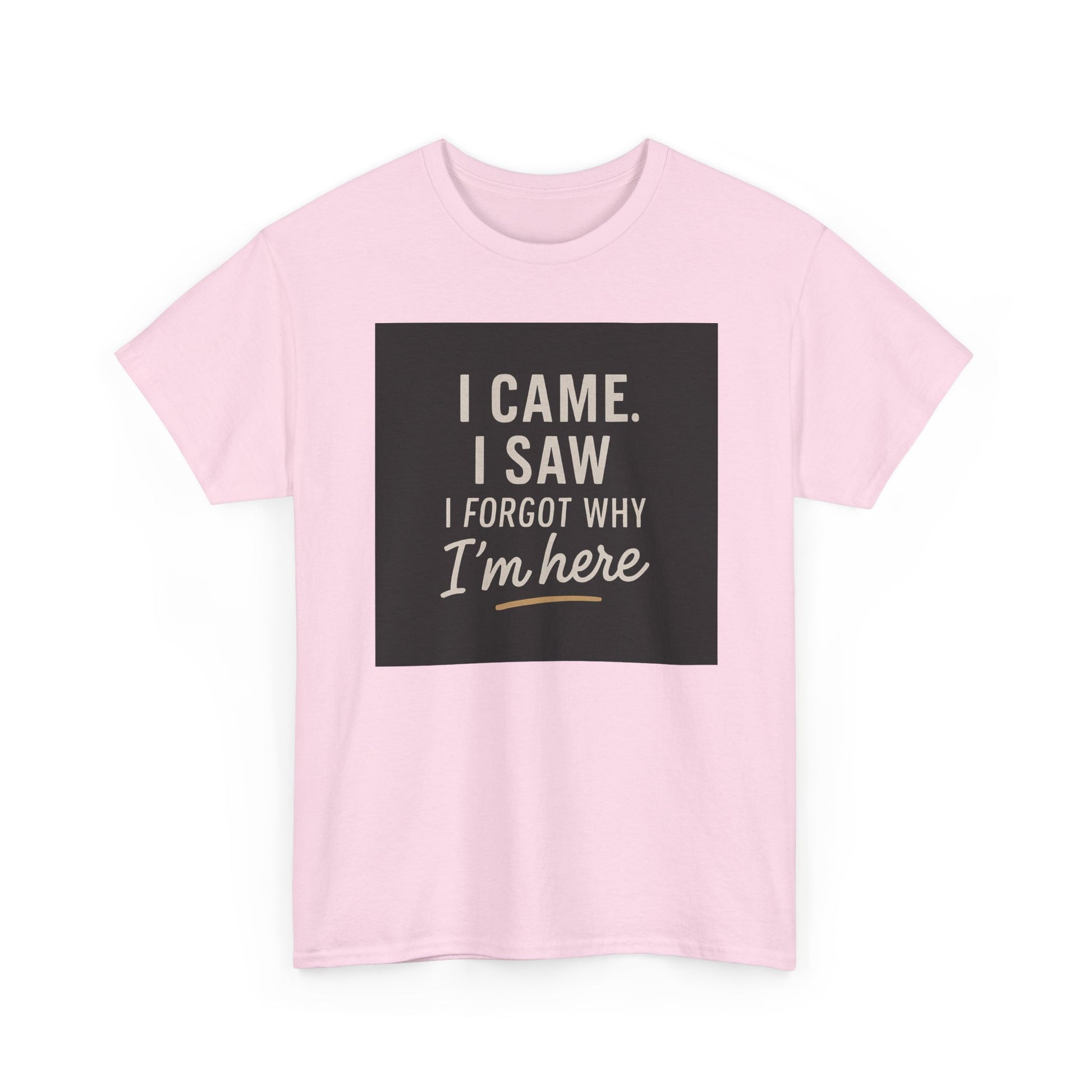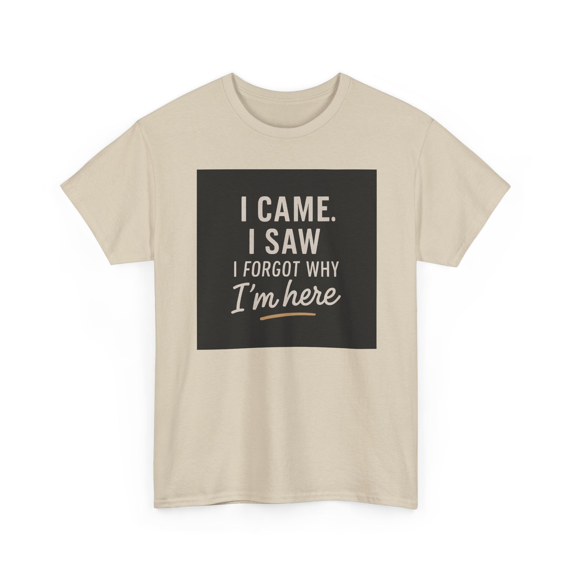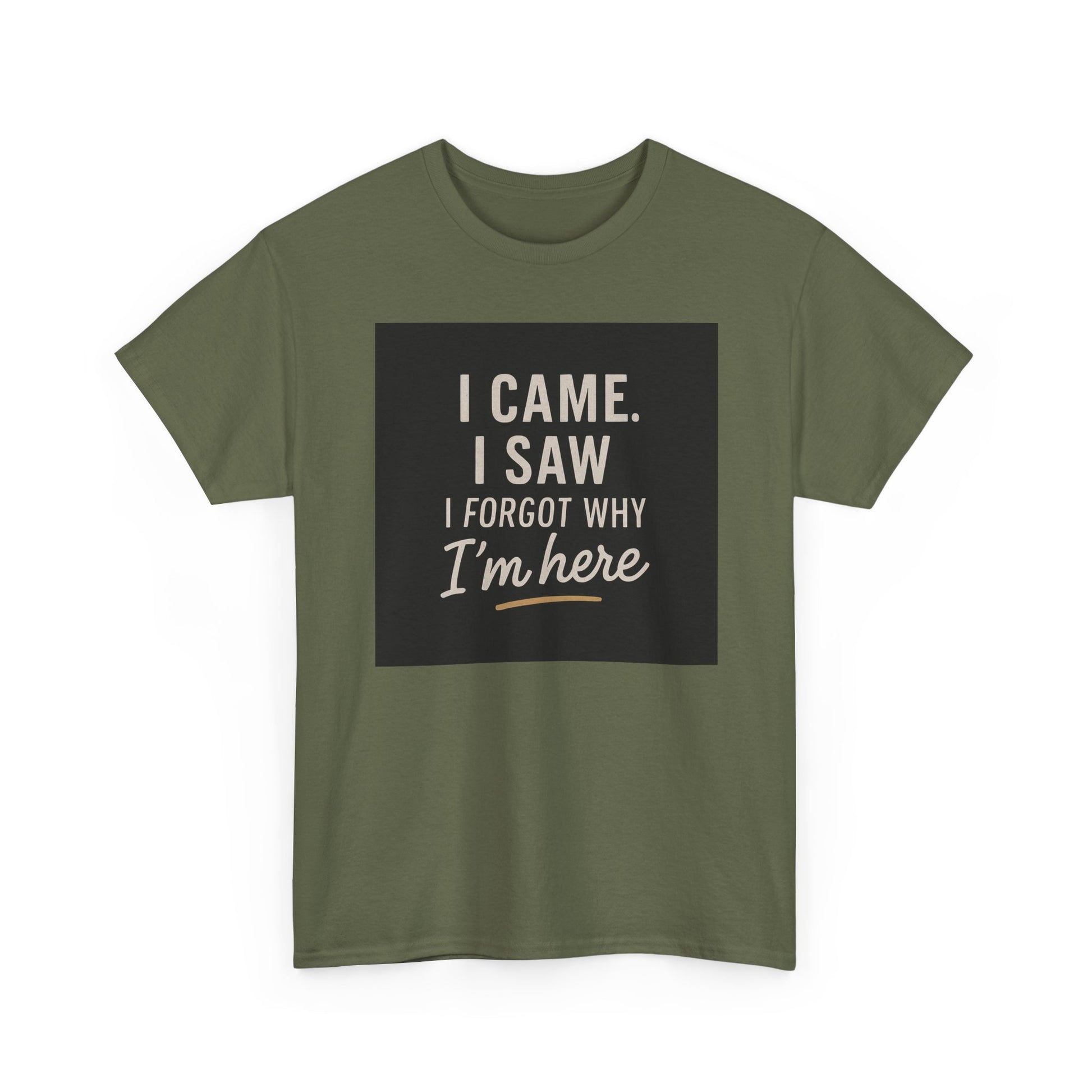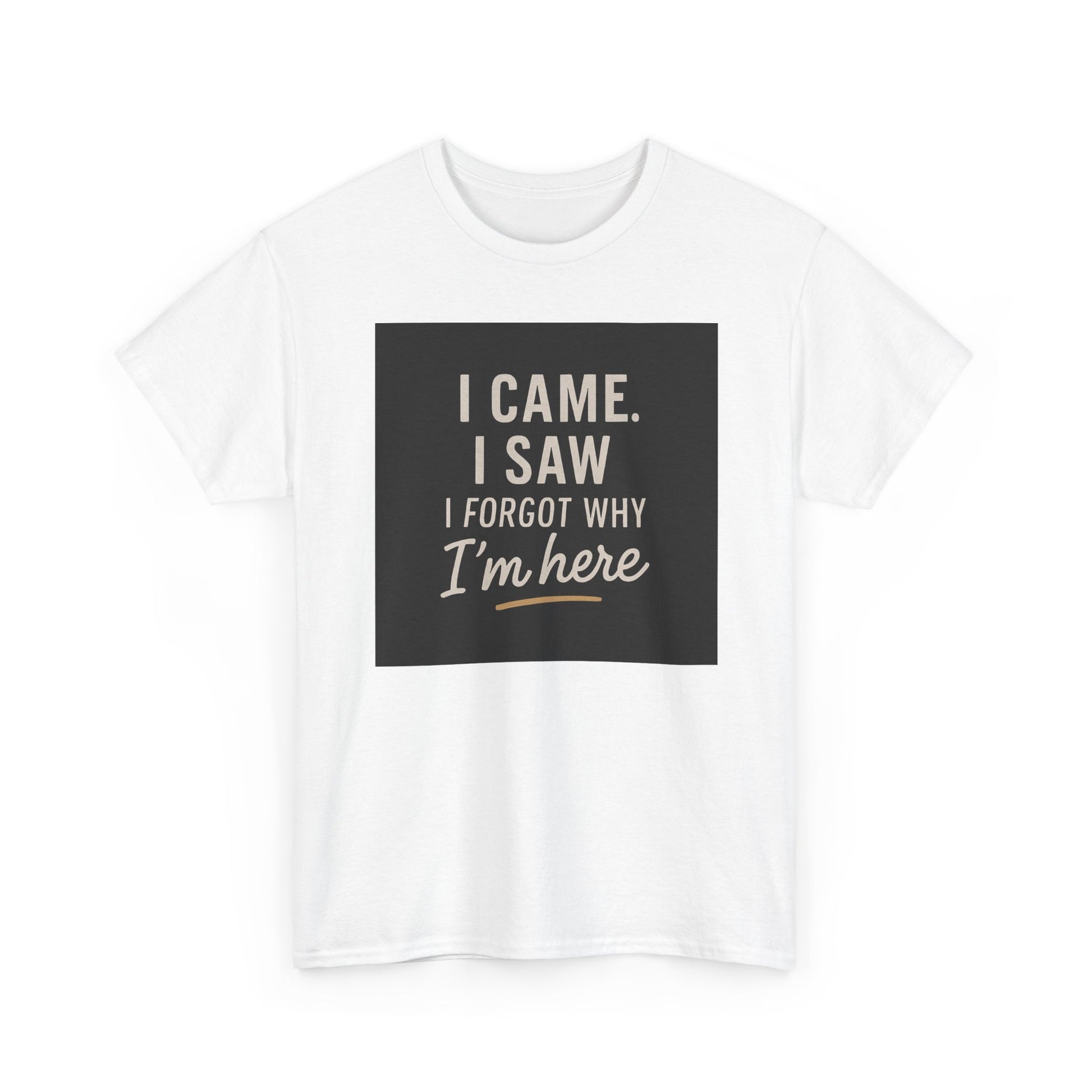 Funny Graphic Tee — “I Came. I Saw. I Forgot Why I’m Here” Cotton T-Shirt
