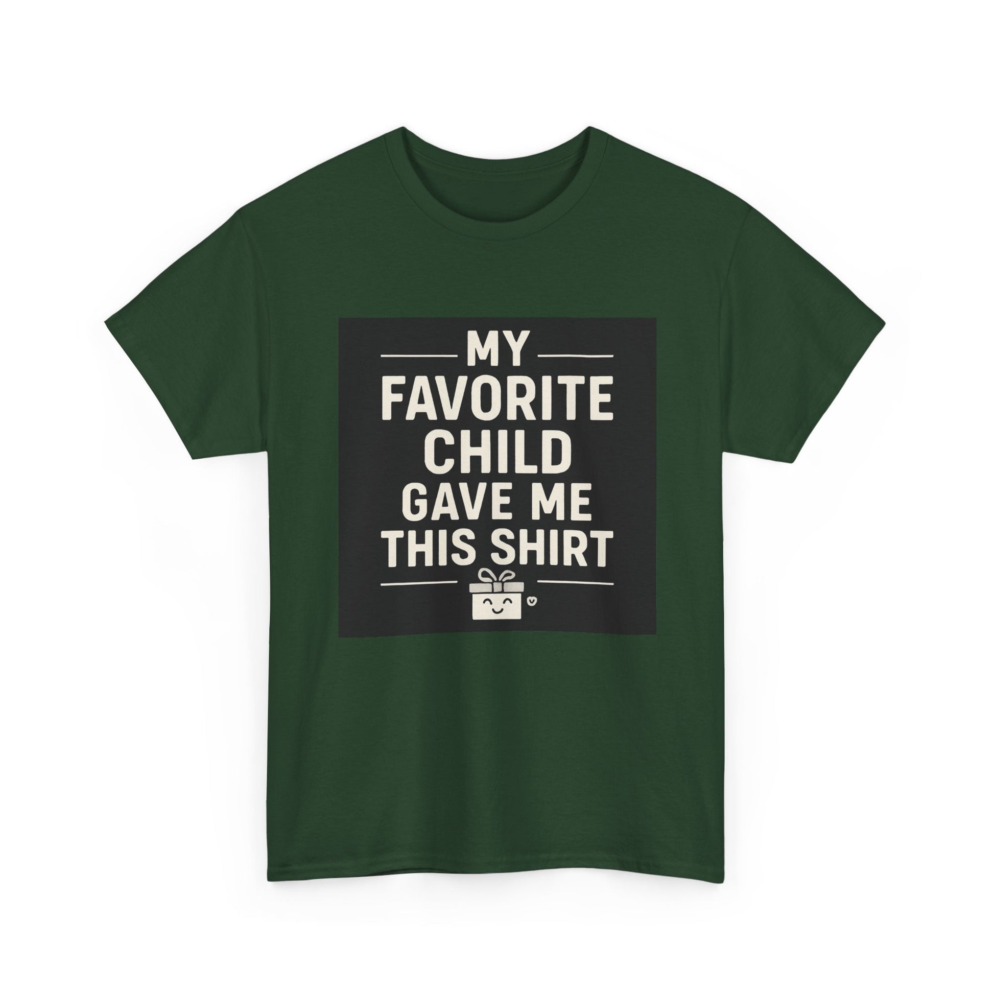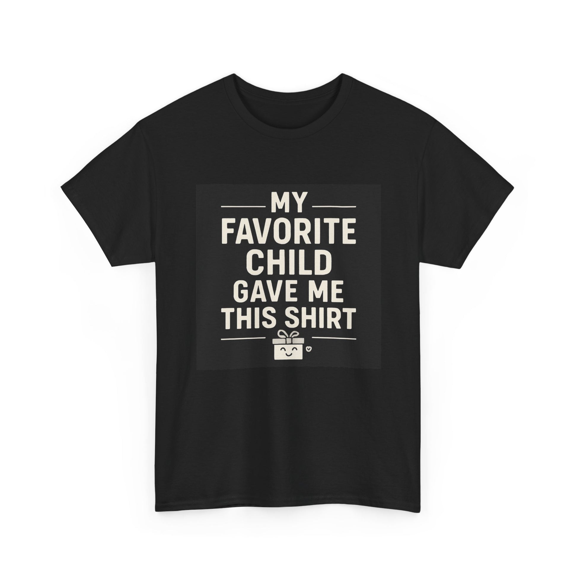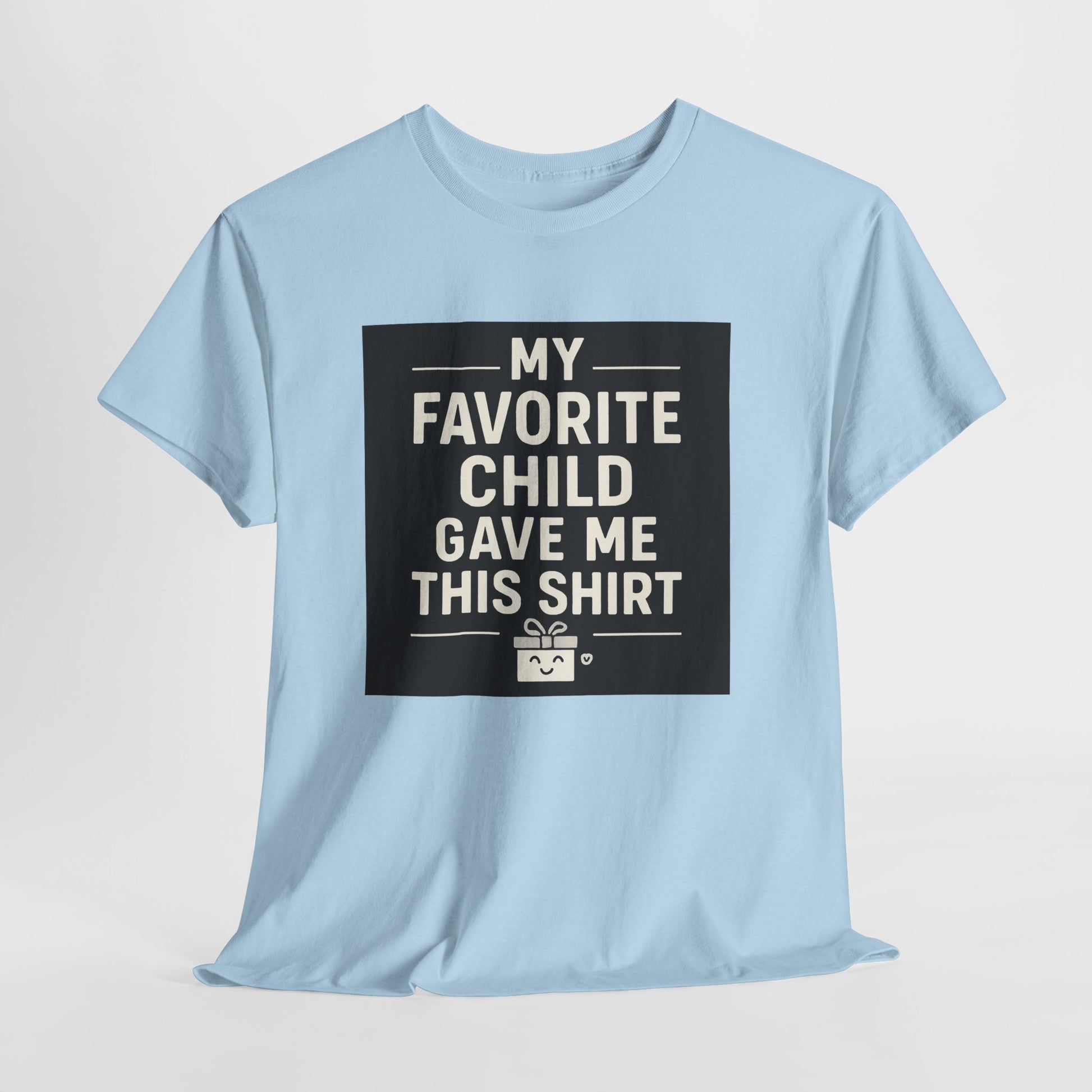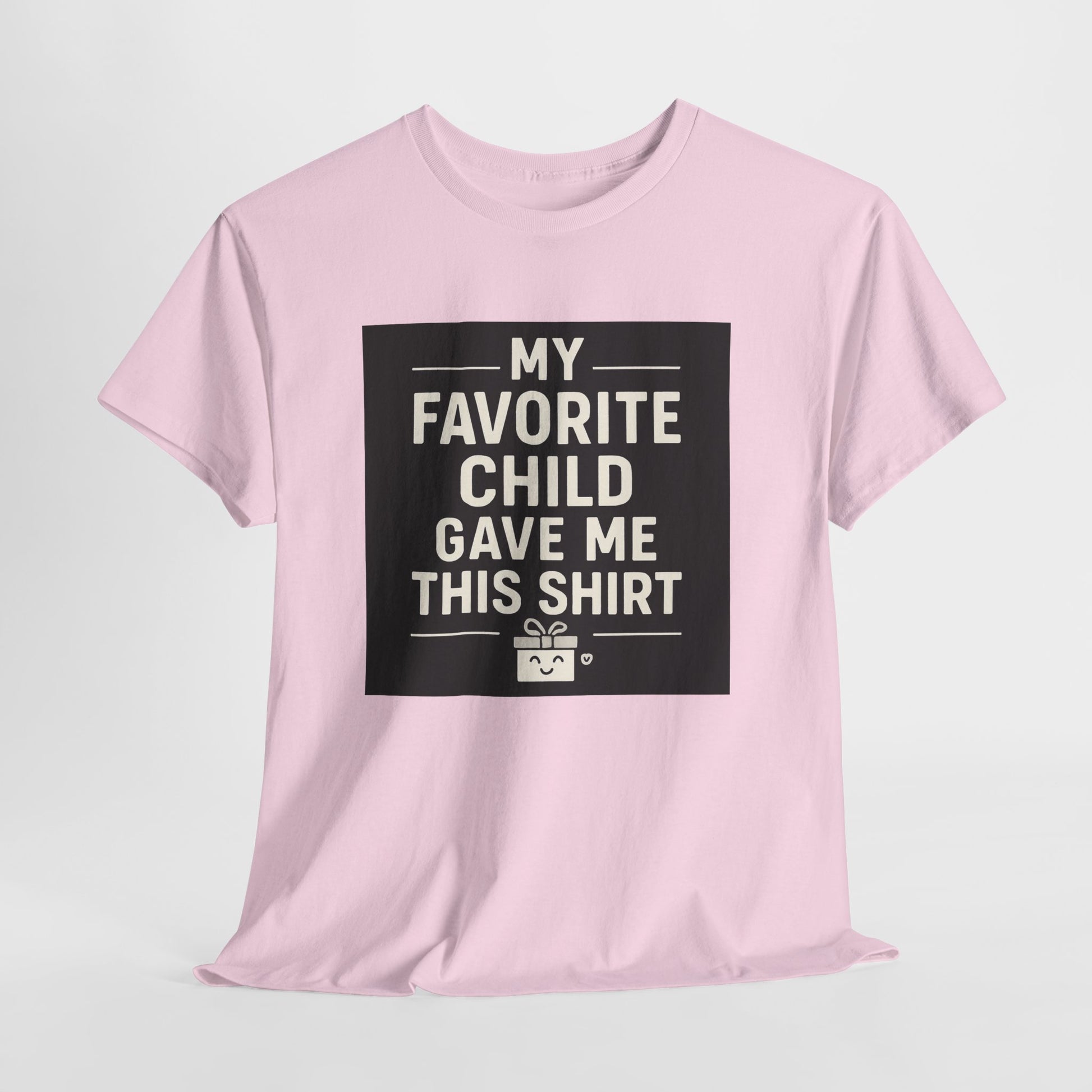 A soft, everyday tee that says what everyone’s thinking with a wink. The shirt features a bold, square-front print reading “MY FAVORITE CHILD GAVE ME THIS SHIRT” with a small gift icon beneath. It’s casual and comfortable, cut in a classic crew-neck silhouette that sits relaxed on the shoulders. The fabric has a smooth surface for crisp printing and a slightly textured Natural option with tiny flecks for a lived-in look. Wear it to family dinners, casual outings, or low-key celebrations where a little humor softens the mood and starts conversations.