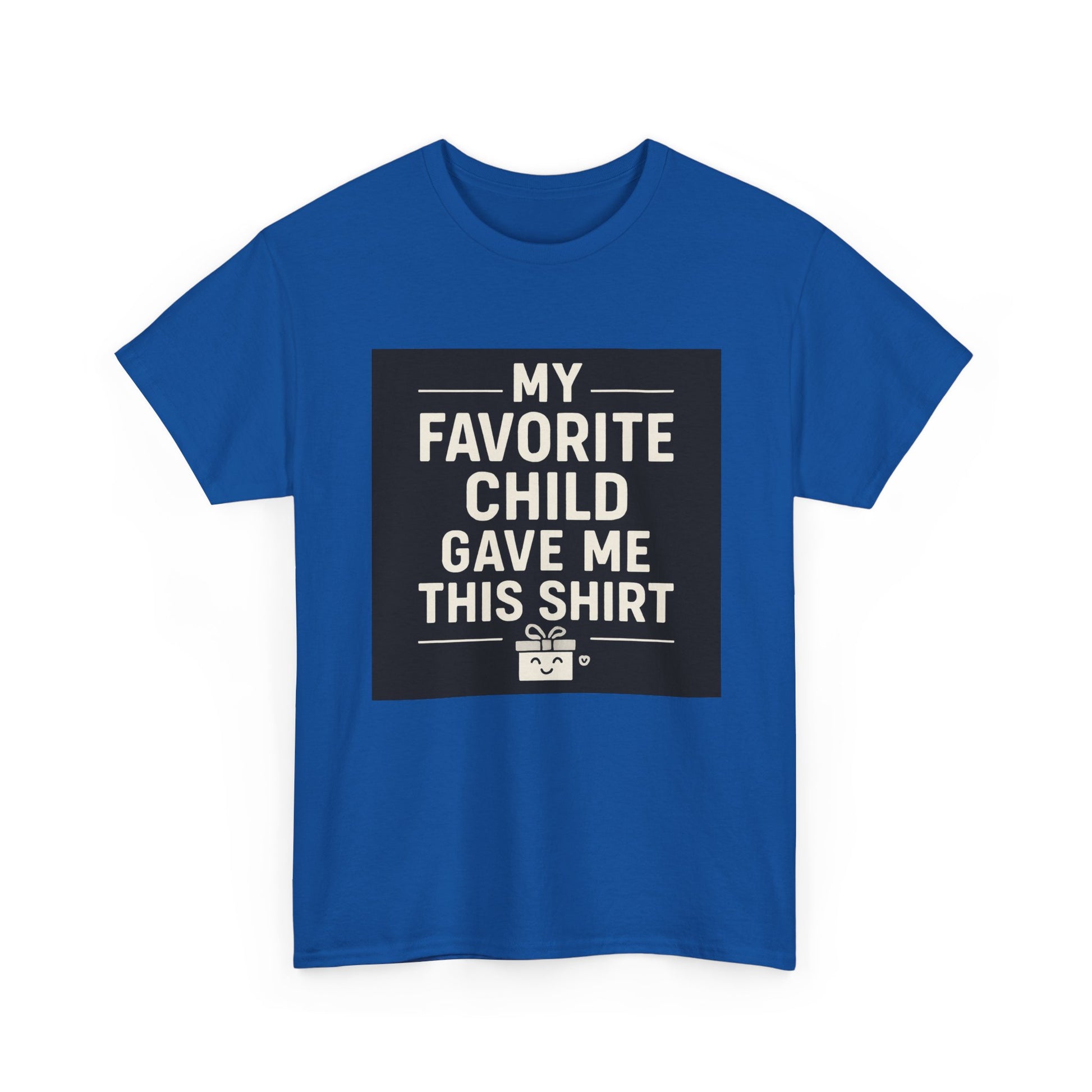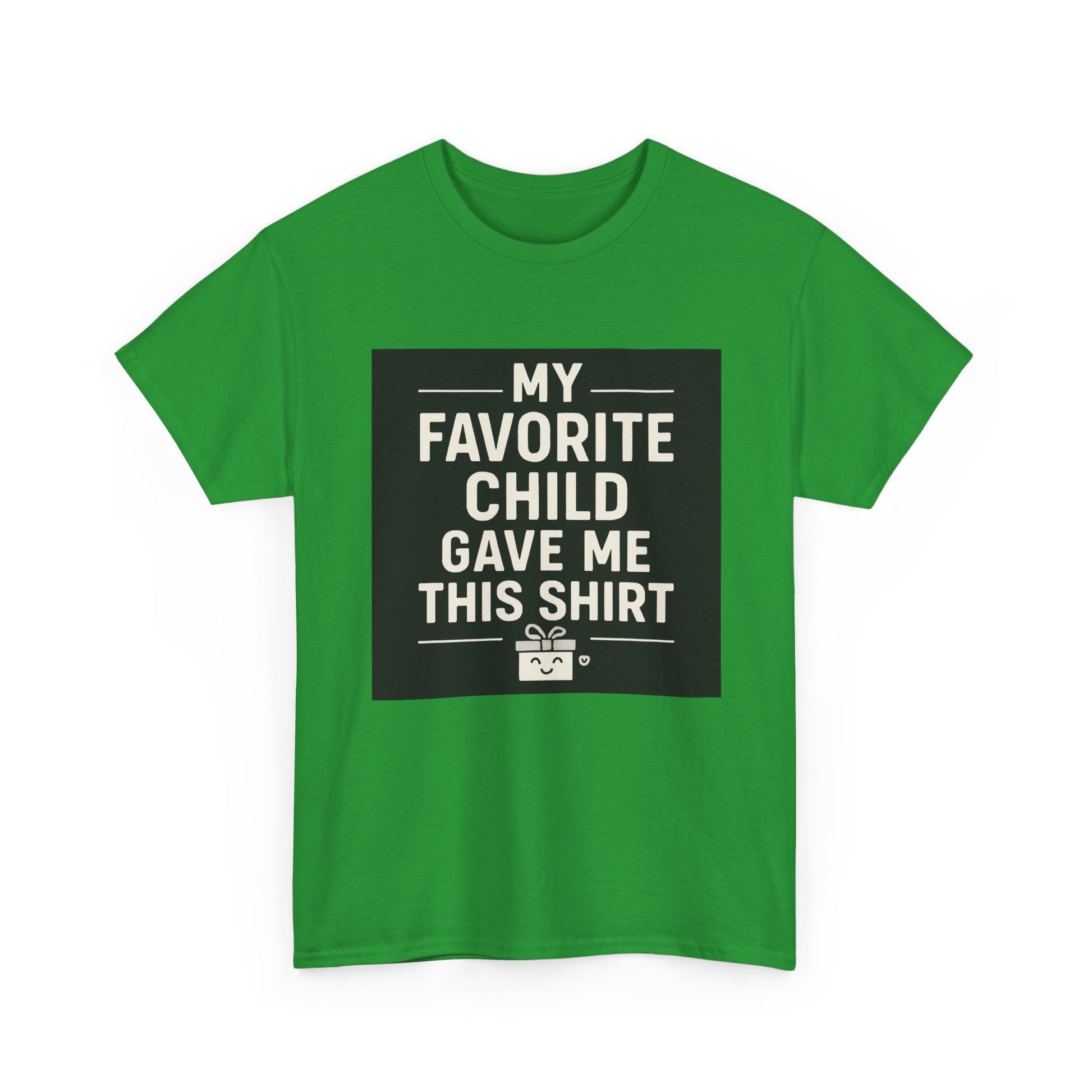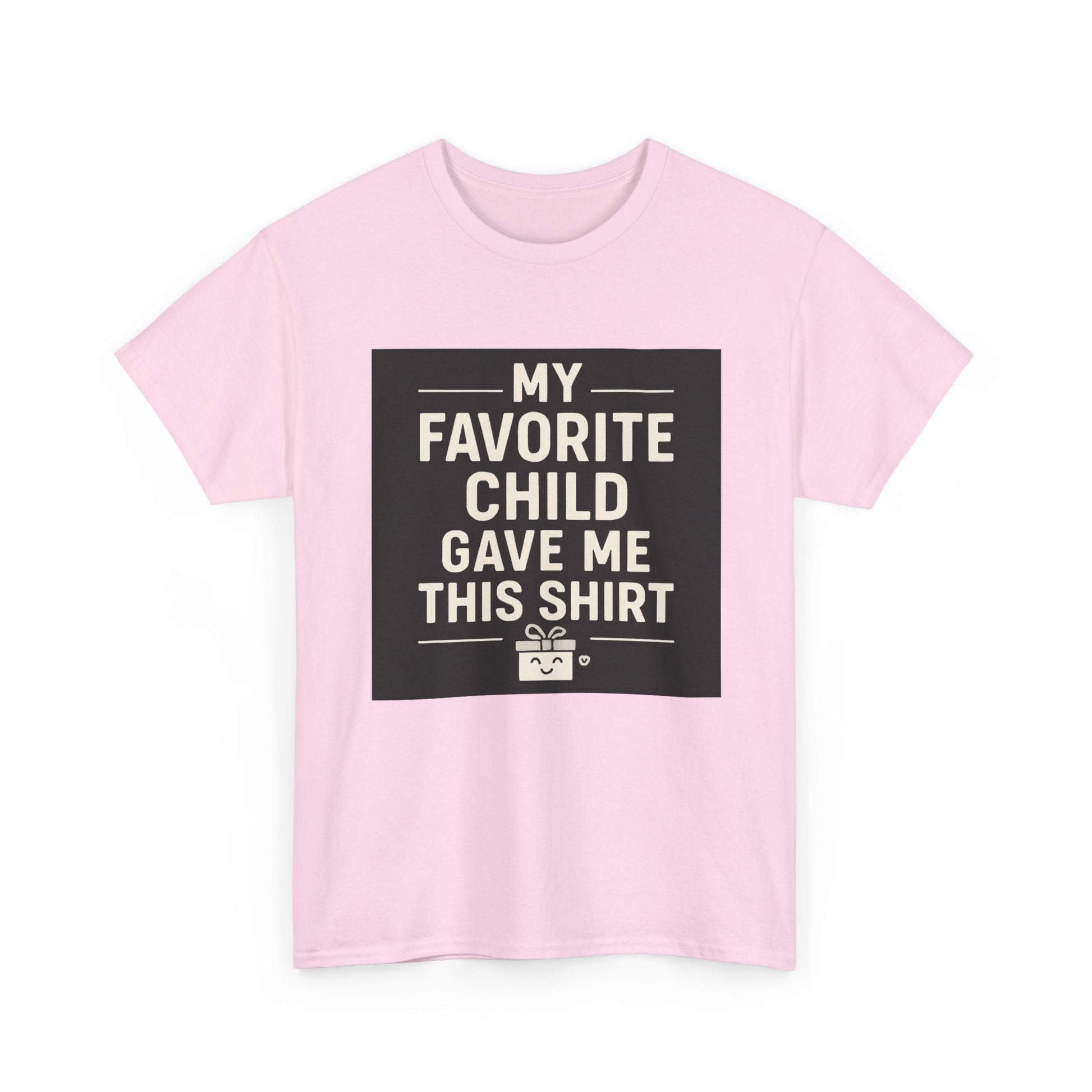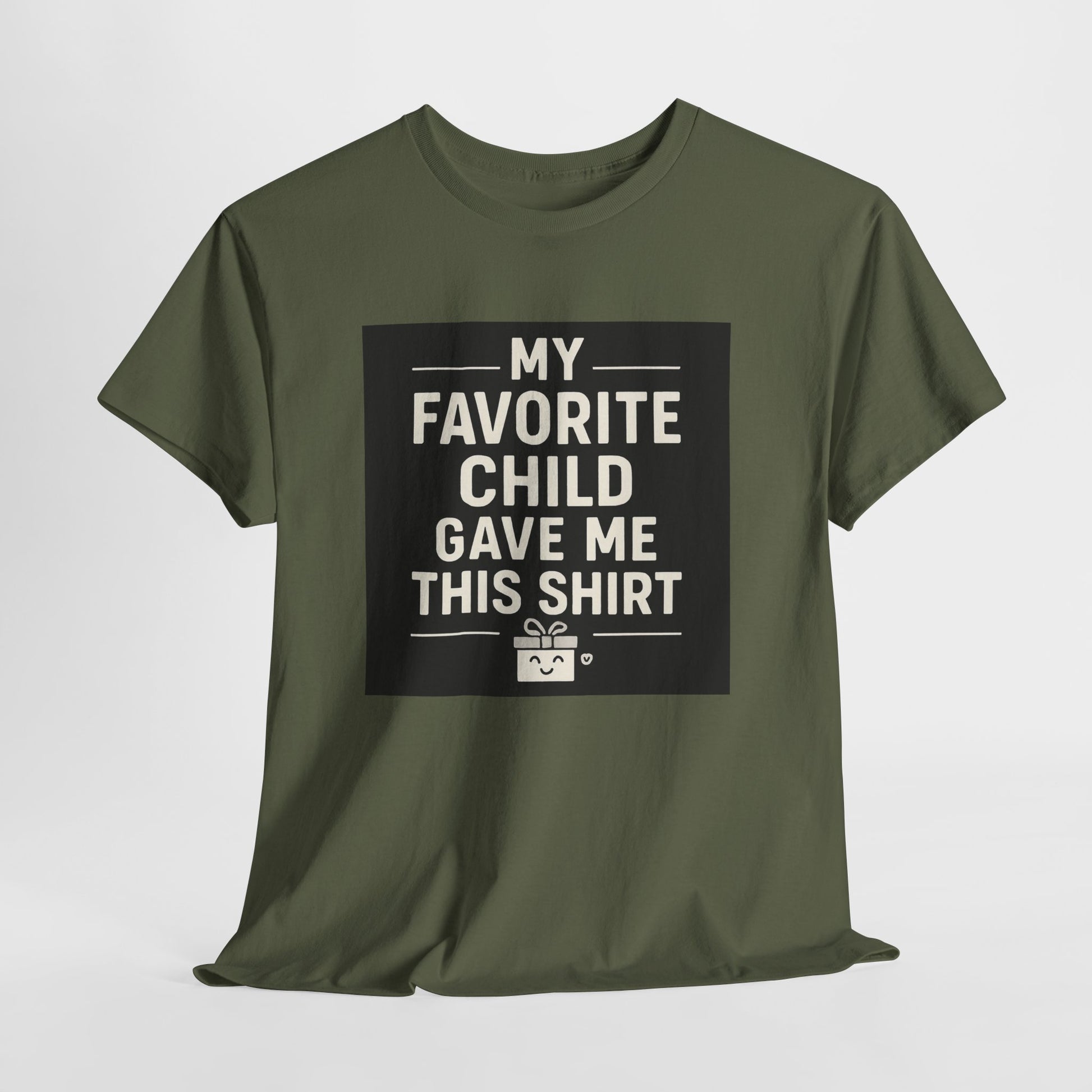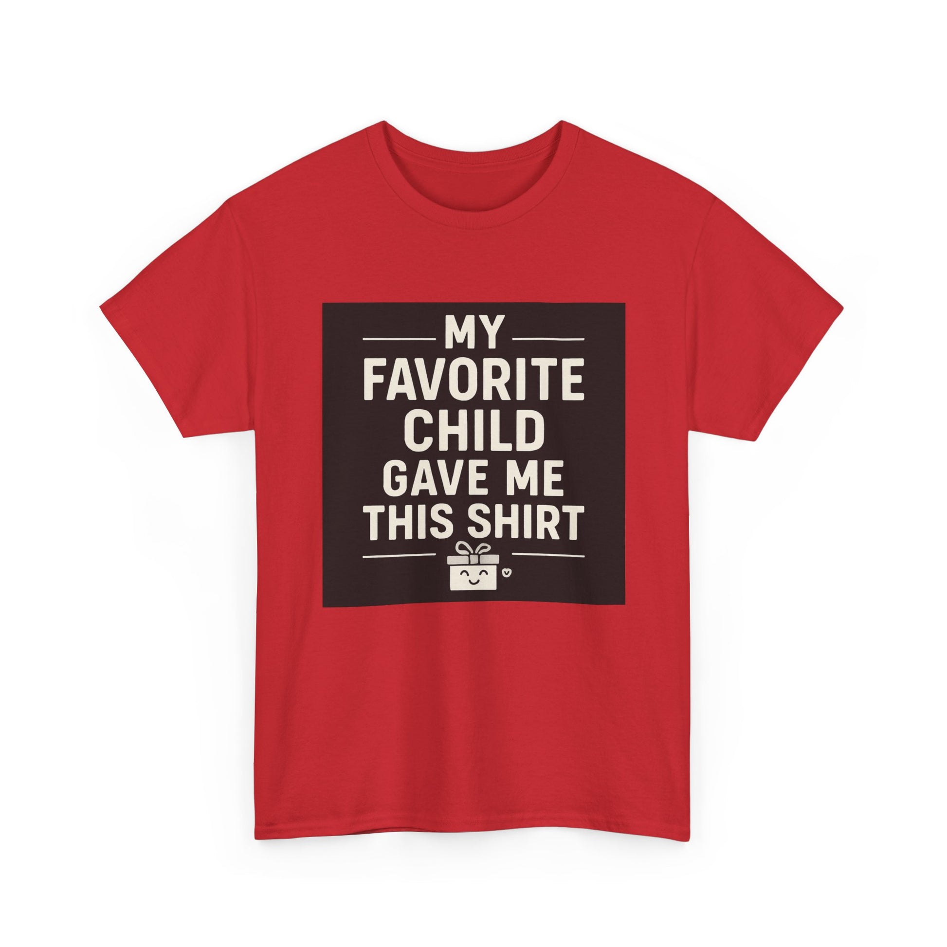 A soft, everyday tee that says what everyone’s thinking with a wink. The shirt features a bold, square-front print reading “MY FAVORITE CHILD GAVE ME THIS SHIRT” with a small gift icon beneath. It’s casual and comfortable, cut in a classic crew-neck silhouette that sits relaxed on the shoulders. The fabric has a smooth surface for crisp printing and a slightly textured Natural option with tiny flecks for a lived-in look. Wear it to family dinners, casual outings, or low-key celebrations where a little humor softens the mood and starts conversations.