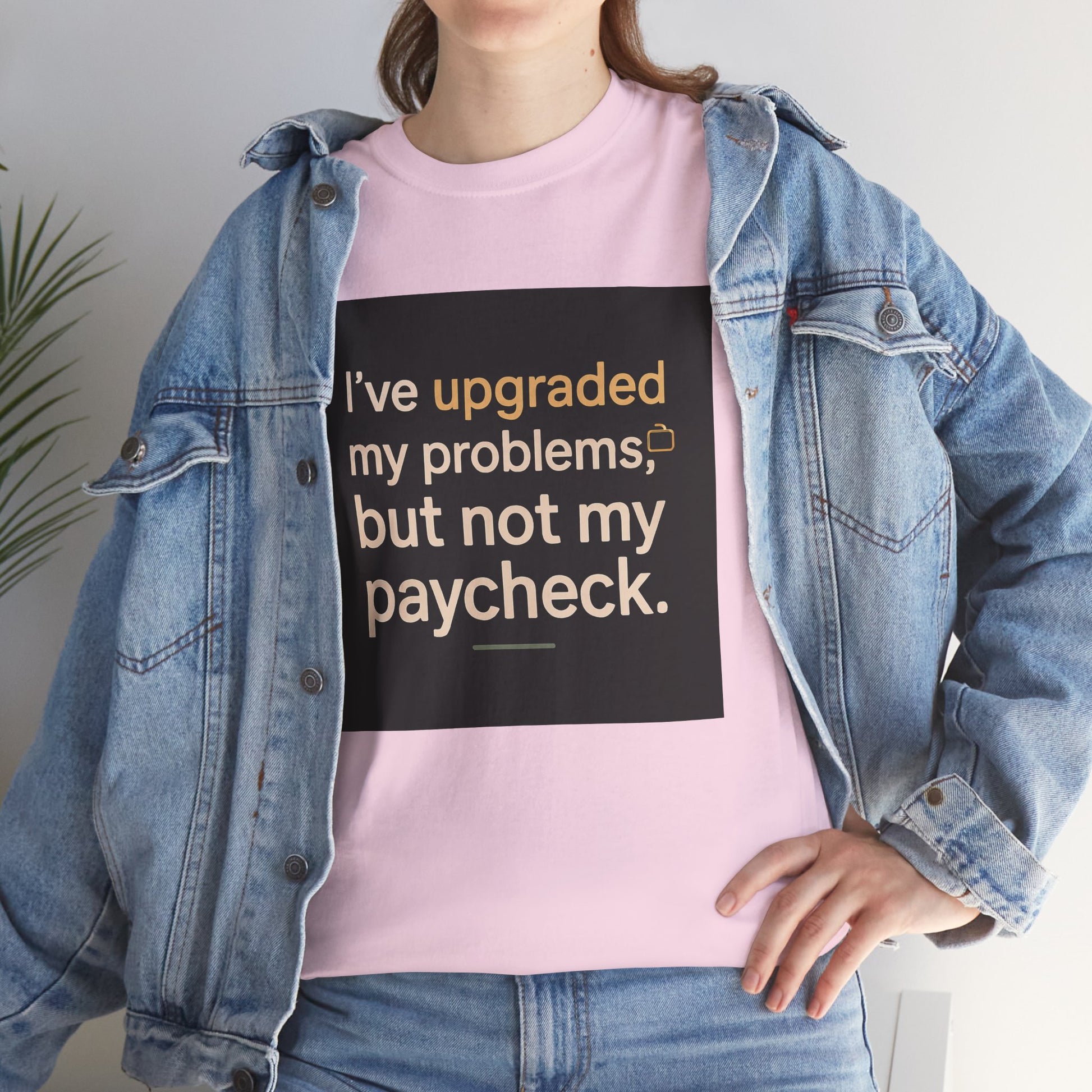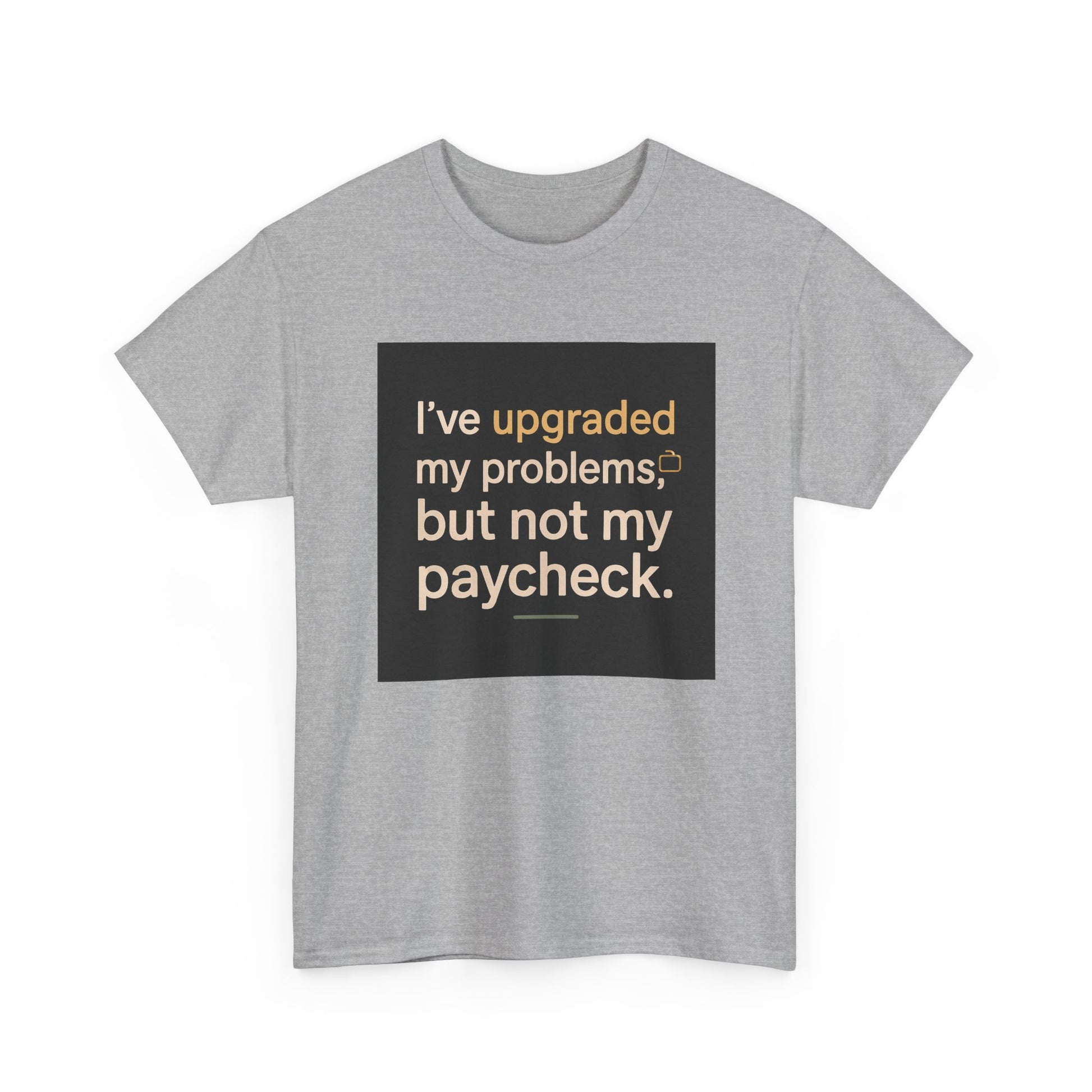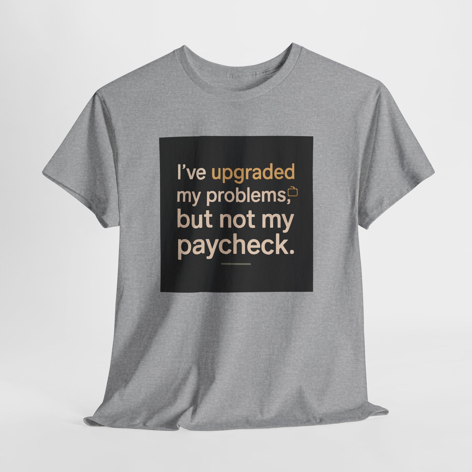 T-Shirt — "I've upgraded my problems, but not my paycheck." Funny Sarcastic Graphic Tee