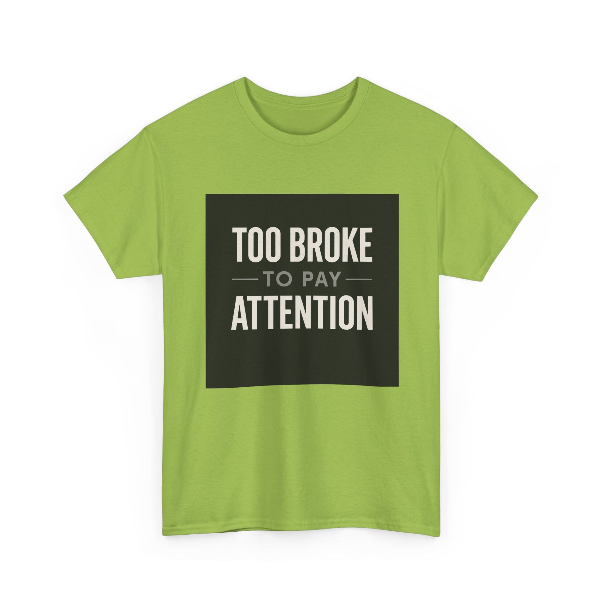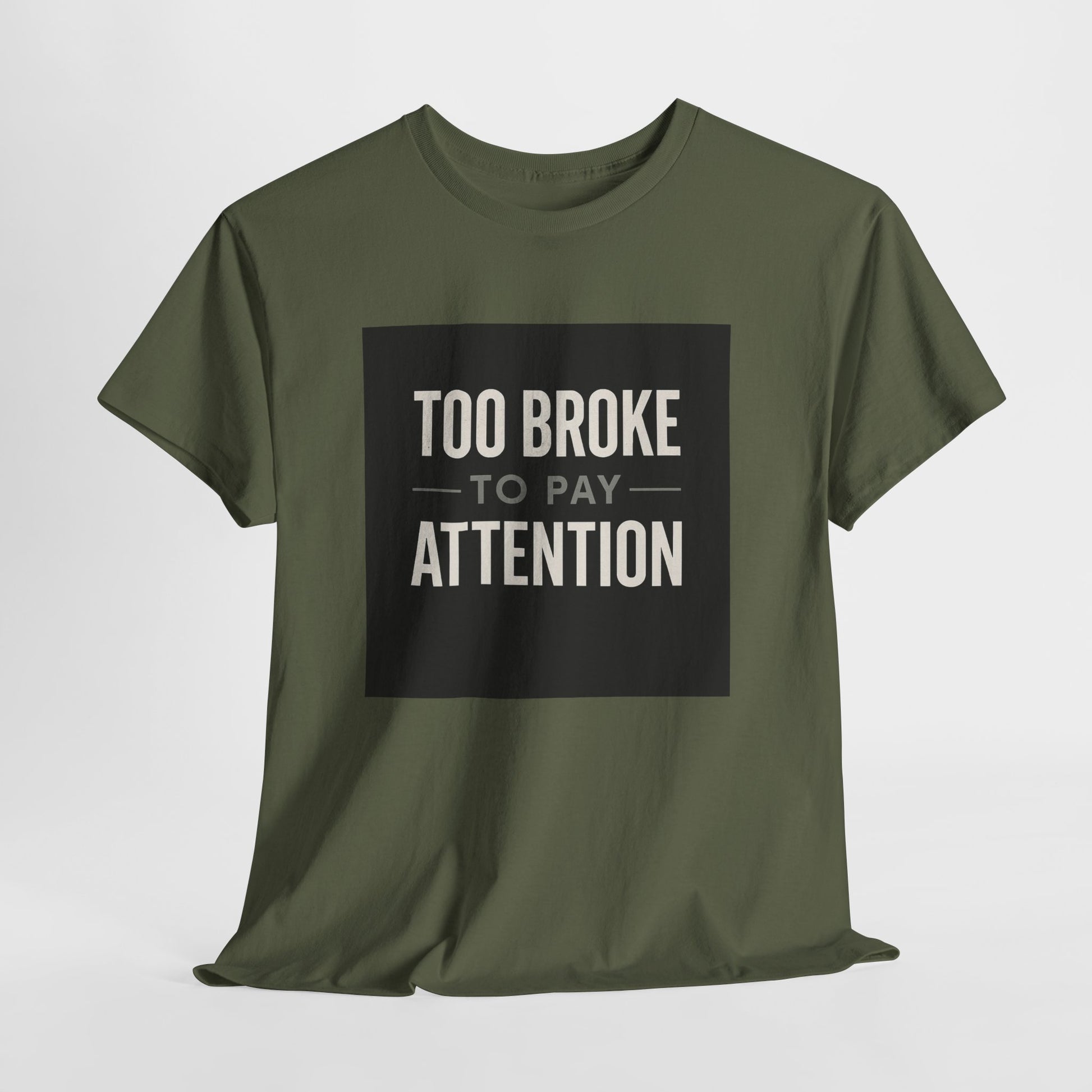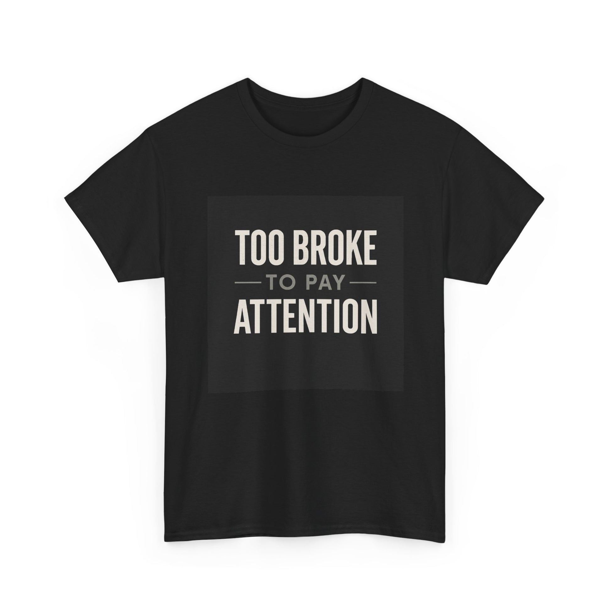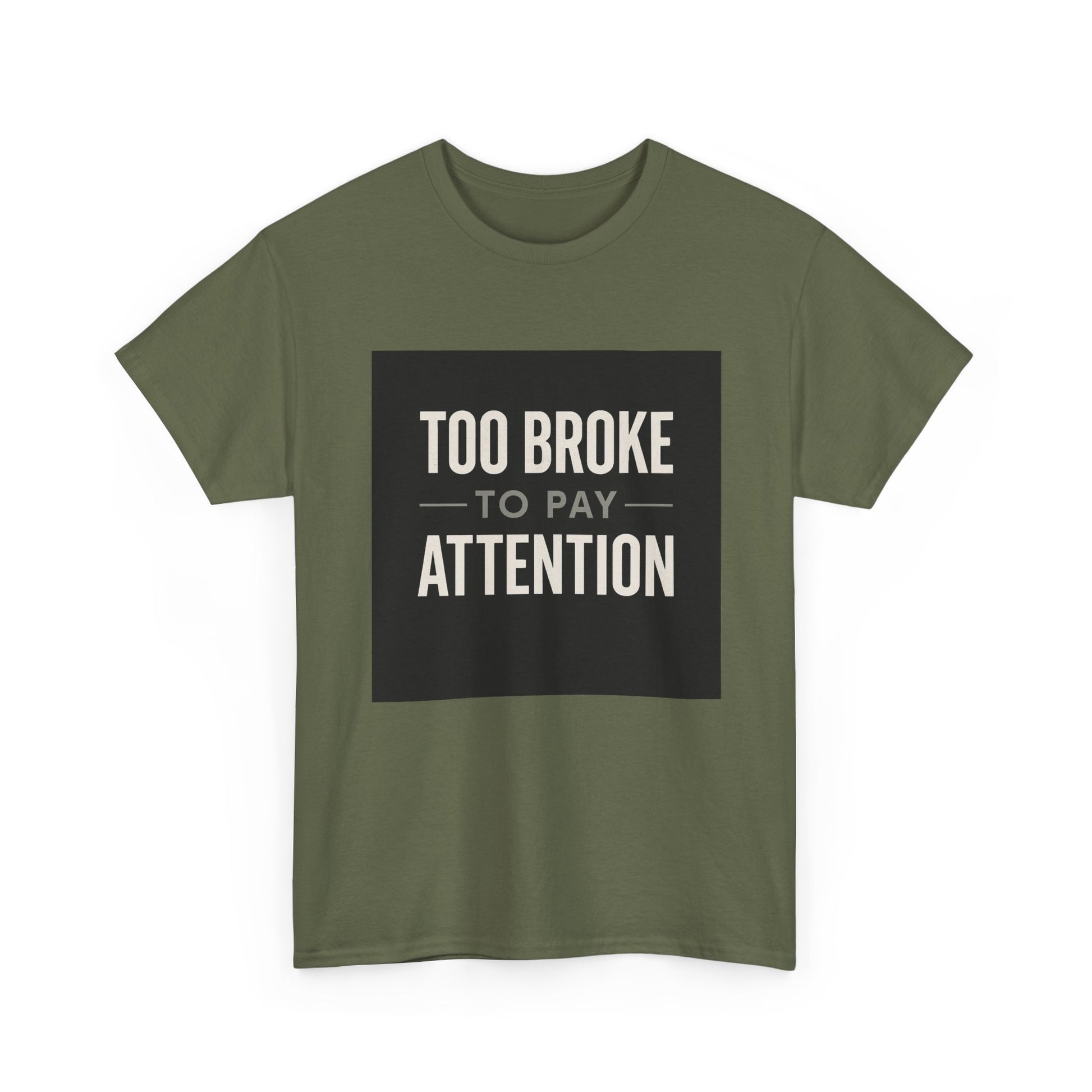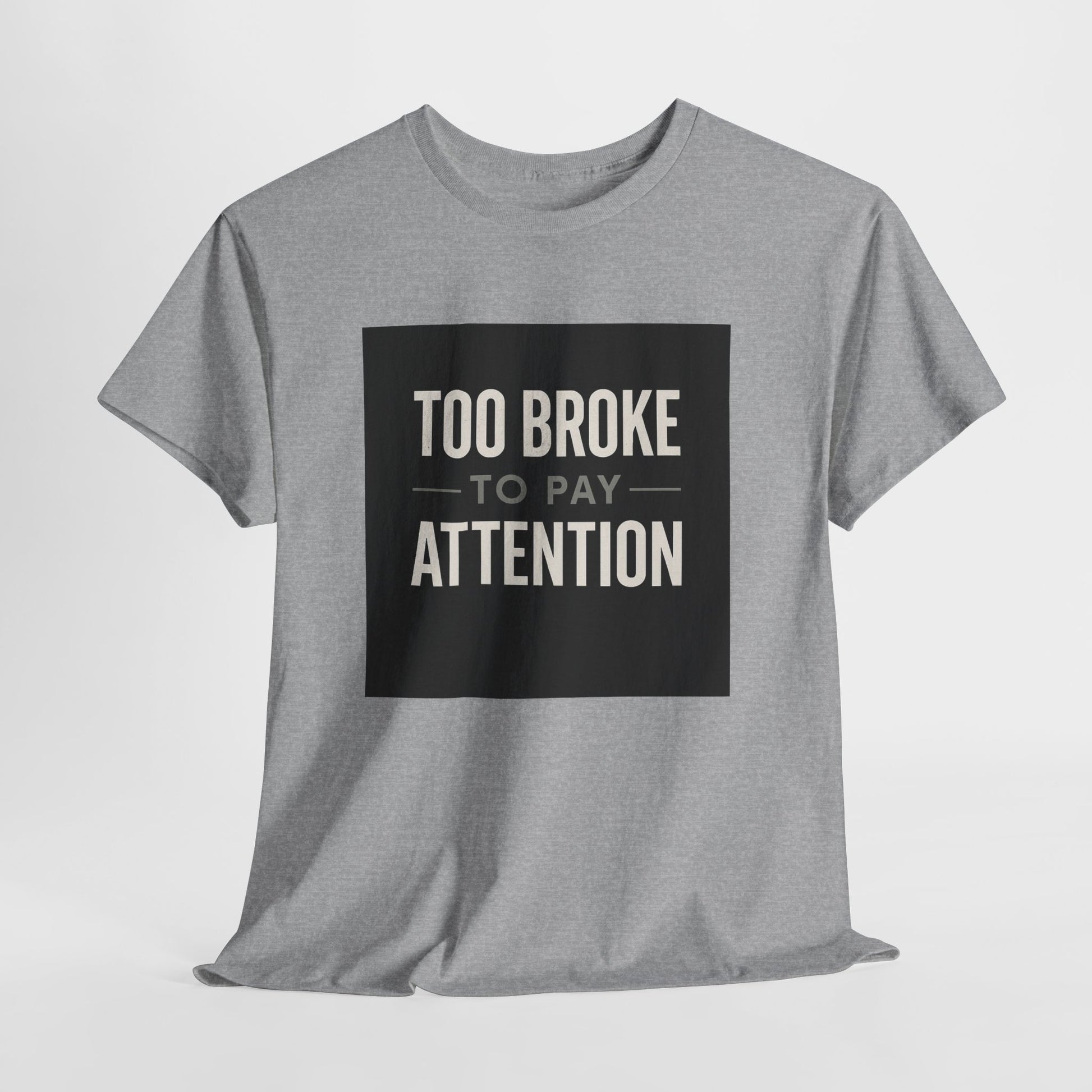 Too Broke To Pay Attention T-Shirt — Funny Sarcastic Graphic Tee